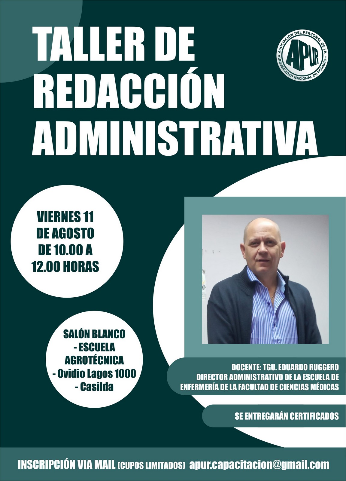 La Comisión Directiva de APUR invita al personal Nodocente de la UNR al “Taller de Redacción Administrativa, 3era. edición".
